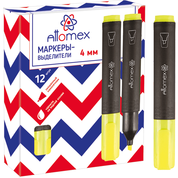 Маркер-выделитель "Attomex" плоский корпус с клипом, скошенный наконечник, ширина линии 1-4 мм, желт