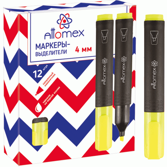 Маркер-выделитель "Attomex" плоский корпус с клипом, скошенный наконечник, ширина линии 1-4 мм, желтый