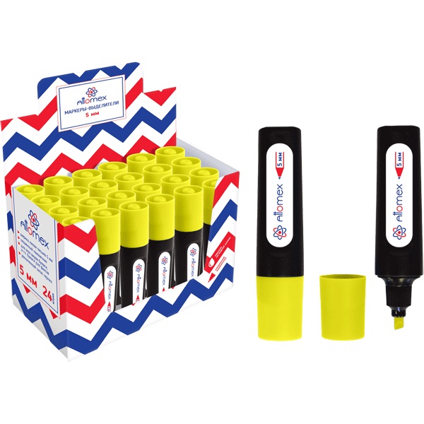 Маркер-выделитель "Attomex" плоский корпус, скошенный наконечник, ширина линии 1-5 мм, желтый, в картонном дисплее