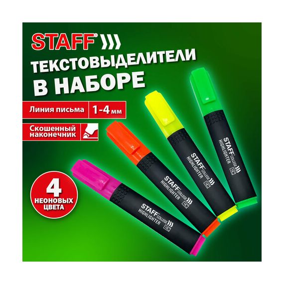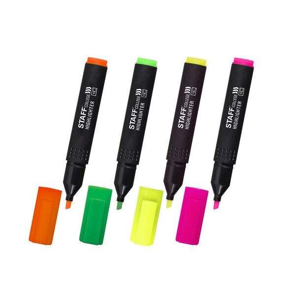 Набор текстовыделителей 4 шт., АССОРТИ, STAFF "College" STICK HL-497, линия письма 1-4 мм