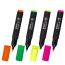 4 неоновых цвета в наборе: желтый, зеленый, оранжевый, розовый. Плоская форма корпуса диаметром 18 мм. Корпус тектовыделителя оснащен удобной зоной захвата. Скошенный наконечник имеет толщину линии письма от 1 до 4 мм, что обеспечивает удобство при работе с текстом, напечатанным мелким шрифтом, или таблицами. Текстовыделитель обладает экономным расходом чернил. Светоустойчивые чернила на водной основе не выцветают даже на открытом солнце и не размазываются в процессе использования. Изделие не перезаправляется. Колпачок с клипом и соответствует цвету чернил.