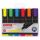 В наборе шесть неоновых цветов: желтый, зеленый, голубой, розовый, оранжевый, фиолетовый. Плоская форма корпуса, диаметр которого 25 мм. Скошенный наконечник имеет толщину линии письма от 1 до 5 мм, что обеспечивает удобство при работе с текстом, напечатанным мелким шрифтом, или таблицами. Благодаря особой водной основе чернил текстовыделители не высыхают без колпачка в течение 8 часов. Текстовыделители обладают экономным расходом чернил, при этом длина линии письма достигает 300 метров. Чернила быстро впитываются и тем самым предотвращают размазывание в процессе использования. Светоустойчивые чернила не выцветают даже на открытом солнце. Цвет клипа соответствует цвету чернил.
