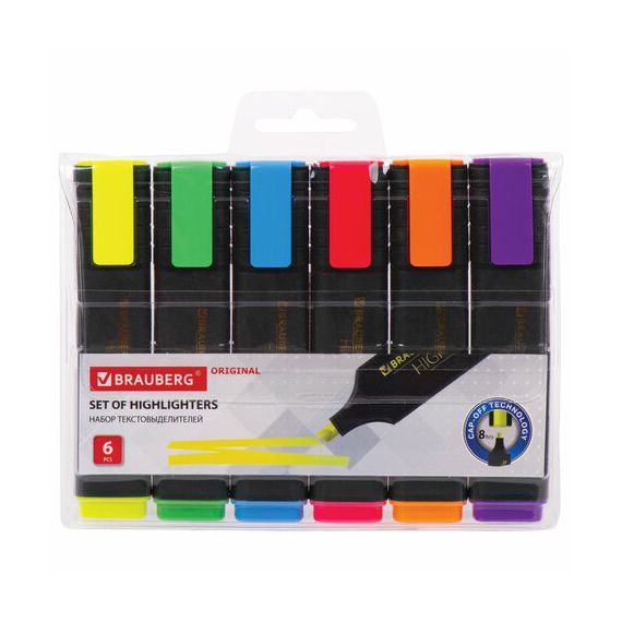 Текстовыделители BRAUBERG "ORIGINAL" предназначены для выделения текста на бумаге любого типа, включая факс-бумагу.