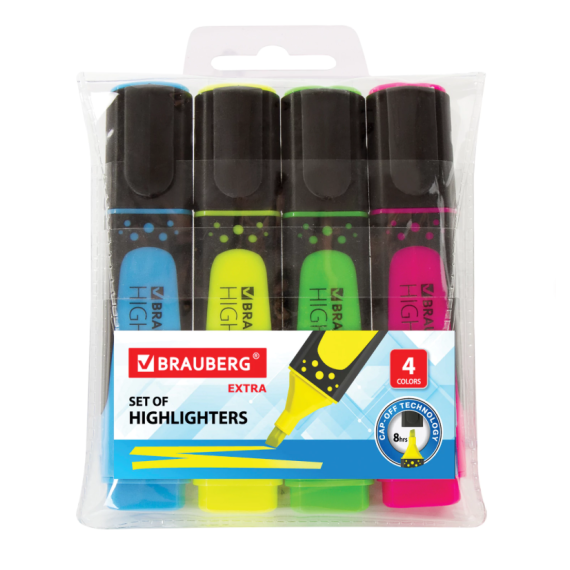 Текстовыделители BRAUBERG "EXTRA" предназначены для выделения текста на бумаге любого типа.