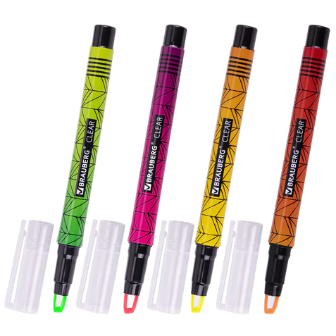 Текстовыделители BRAUBERG "Clear" предназначены для выделения текста на бумаге любого типа, включая факс-бумагу.