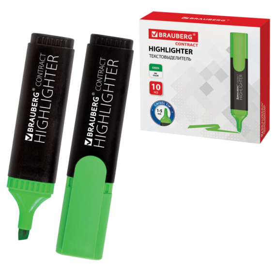 Текстовыделитель BRAUBERG "Contract" предназначен для выделения текста на бумаге любого типа, включая факс-бумагу.
