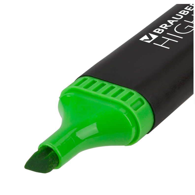 Текстовыделитель зеленого цвета обладает неоновым спецэффектом. Скошенный наконечник имеет толщину линии письма от 1 до 5 мм. Текстовыделитель обладает продленной линией письма и экономным расходом чернил. Светоустойчивые чернила не выцветают даже на открытом солнце и не заметны при передаче текста по факсу. Колпачок с клипом и соответствует цвету чернил. Пластиковый корпус имеет диаметр 26 мм.