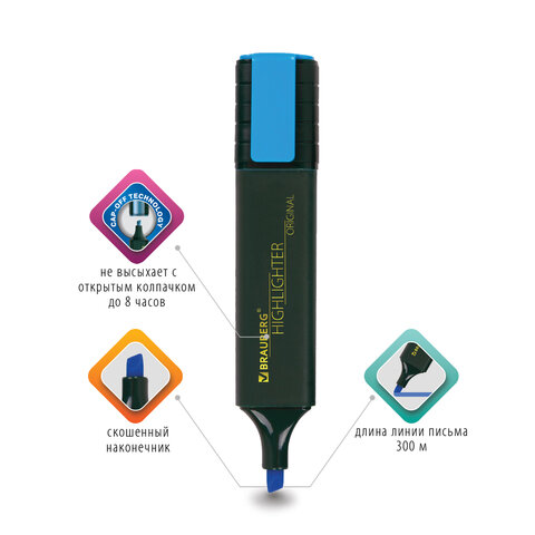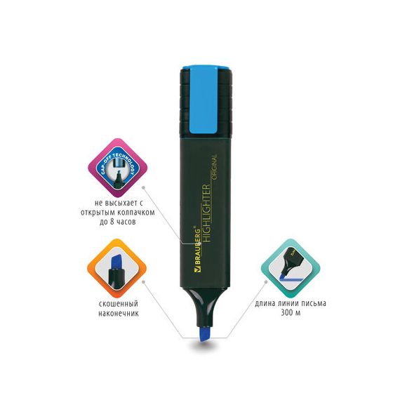 Текстовыделитель BRAUBERG "ORIGINAL" предназначен для выделения текста на бумаге любого типа, включая факс-бумагу.