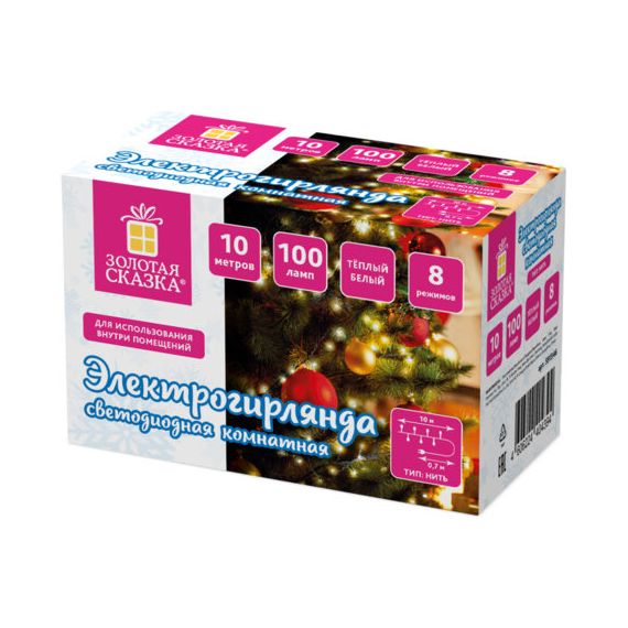 Электрогирлянда-нить комнатная "Стандарт" 10 м, 100 LED, теплый белый свет, 220 V, контроллер, ЗОЛОТ