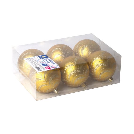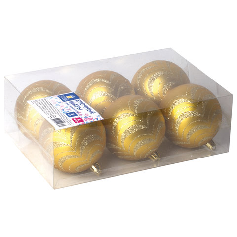 Шары ёлочные 6 шт., 8 см, "Basic Art", пластик, золотистые матовые с узором, ЗОЛОТАЯ СКАЗКА