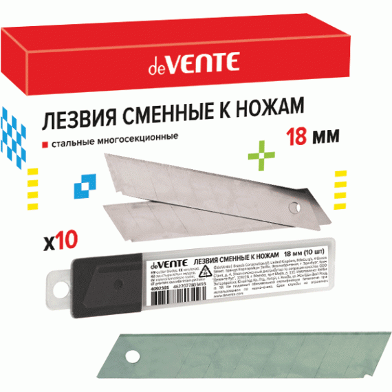 Лезвия сменные "deVENTE" к ножам 18 мм, 10 шт в пластиковом футляре, пластиковый блистер