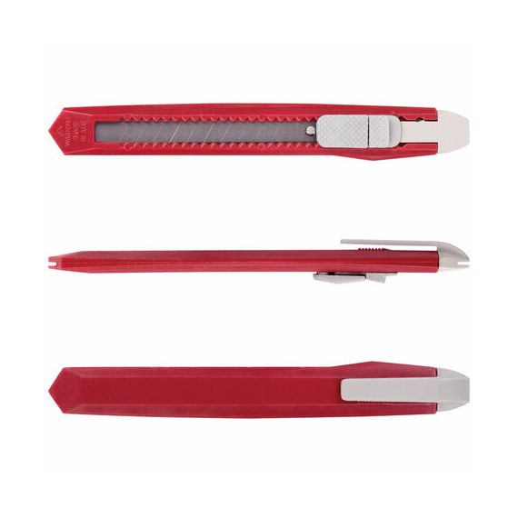 Благодаря своей обтекаемой форме нож удобно держать в руке. Пластиковый корпус с клипом защищает лезвие шириной 9 мм от повреждений и гарантирует безопасность применения. Фиксатор позволяет закрепить лезвие в нужном положении с помощью защелки.