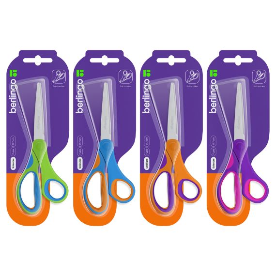 Ножницы Berlingo серии Fuze подходят для работы с бумагой и картоном. Лезвия изготовлены из качественной нержавеющей стали. Длина: 177 мм. Ассорти ярких цветов ручек: синий, фиолетовый, зеленый, оранжевый, розовый. Удобные симметричные пластиковые ручки имеют эргономичную форму. Комфорт в использовании добавляет новый усовершенствованный соединительный винт. Упаковка – удобный для продажи блистер с европодвесом, позволяющий оценить характеристики ножниц, не нарушая упаковку.