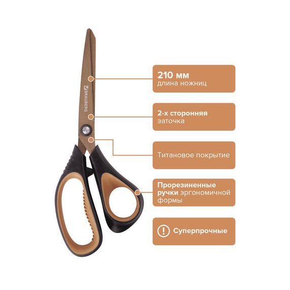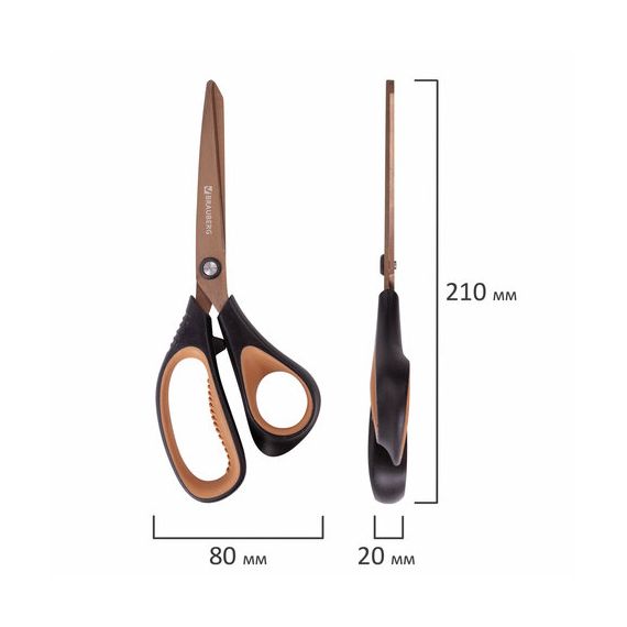 Ножницы BRAUBERG "Heavy Duty", 210 мм, суперпрочные, титановое покрытие, 2-х сторонняя заточка