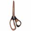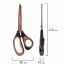 Титановое напыление лезвий с двусторонней заточкой способствует необходимой прочности, устойчивости к износу и комфортному выполнению работы. Золотистый цвет лезвий обеспечивает уникальный стиль изделия. Эргономичные ручки изготовлены из пластика и дополнены характерными резиновыми вкладышами. Длина ножниц – 210 мм.