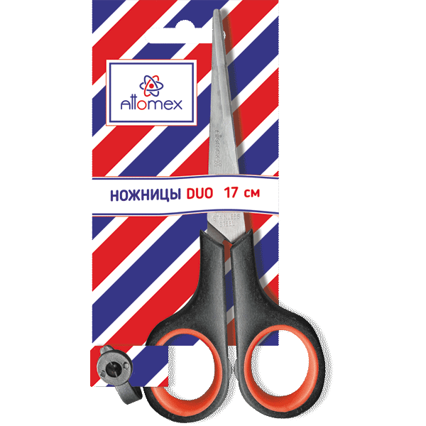 Ножницы канцелярские "Attomex. Duo" 17 см, двухцветные прорезиненные кольца, в картонном блистере