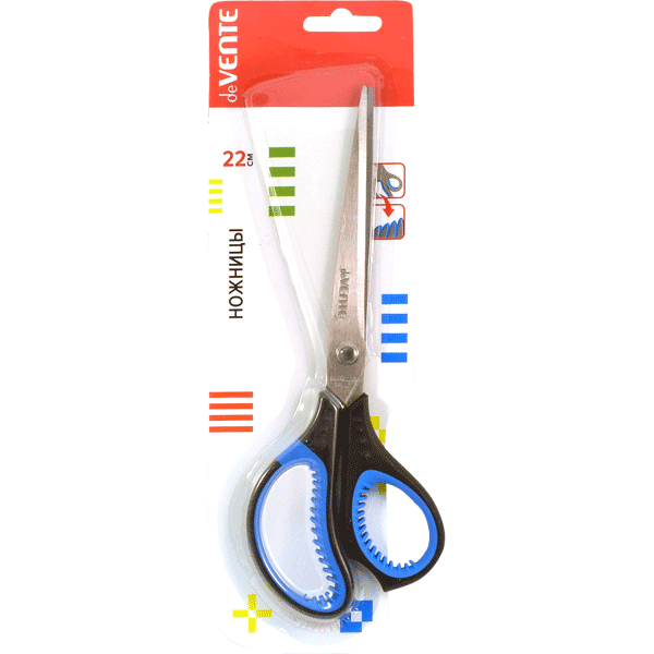 Ножницы канцелярские "deVENTE. Gills" 22 см, двухцветные прорезиненные кольца c лепестками, в картонном блистере