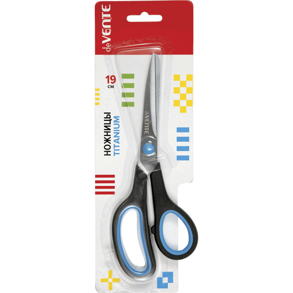Ножницы канцелярские "deVENTE. Titanium" 19 см, лезвия из нержавеющей стали с титановым покрытием, двухцветные прорезиненные кольца, в картонном блистере