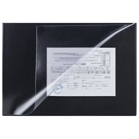 Коврик-подкладка настольный для письма (590х380 мм), с прозрачным карманом, черный, BRAUBERG