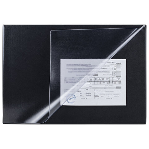 Коврик-подкладка настольный для письма (650х450 мм), с прозрачным карманом, черный, BRAUBERG