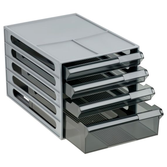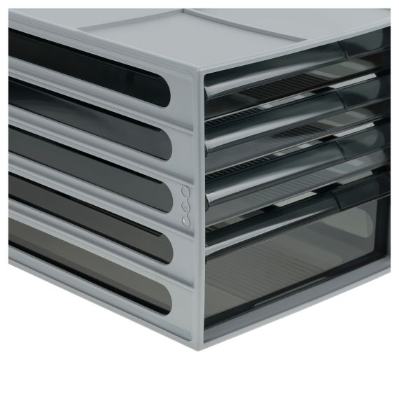Блок из 4 выдвижных лотков СТАММ, серый корпус, тонированные черные лотки