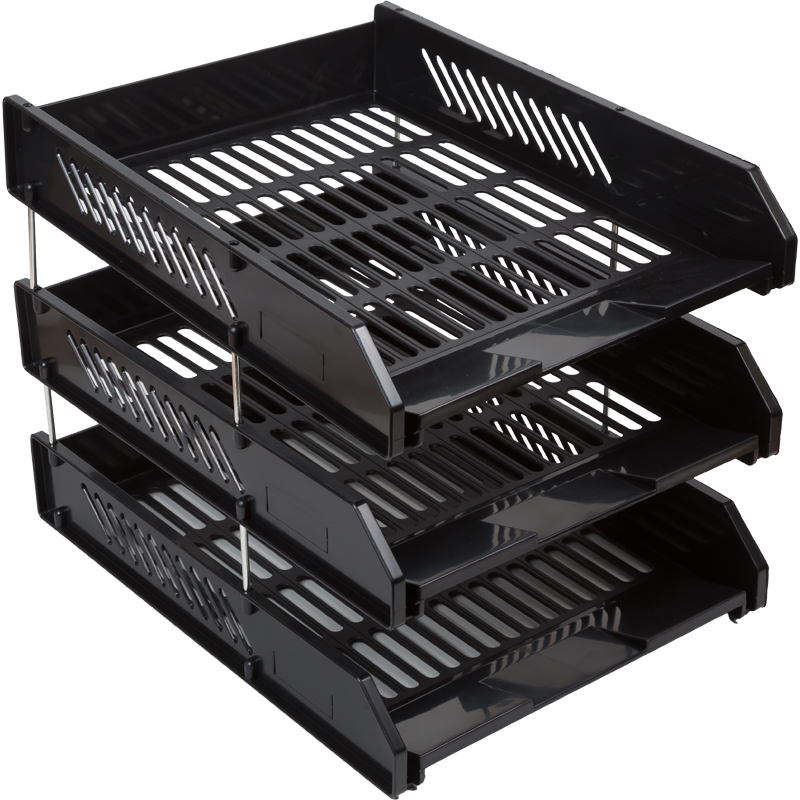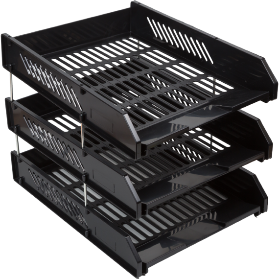 Лоток для бумаг 3-x секционный A4 "deVENTE" размер 258x332x255 мм, полистирол, металлические штыри, для бумаги формата А4, черный, индивидуальная упаковка