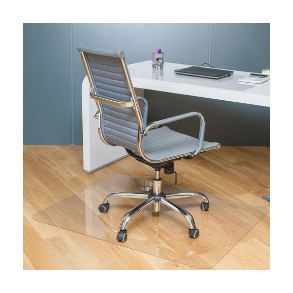 Подходит для твердых покрытий — паркета, линолеума, ламината, керамической плитки. Можно использовать на полу с подогревом. Прямоугольный коврик размером 90х120 см изготовлен из прозрачного поликарбоната толщиной 1 мм, устойчив к механическим воздействиям, не желтеет со временем, нетоксичен.