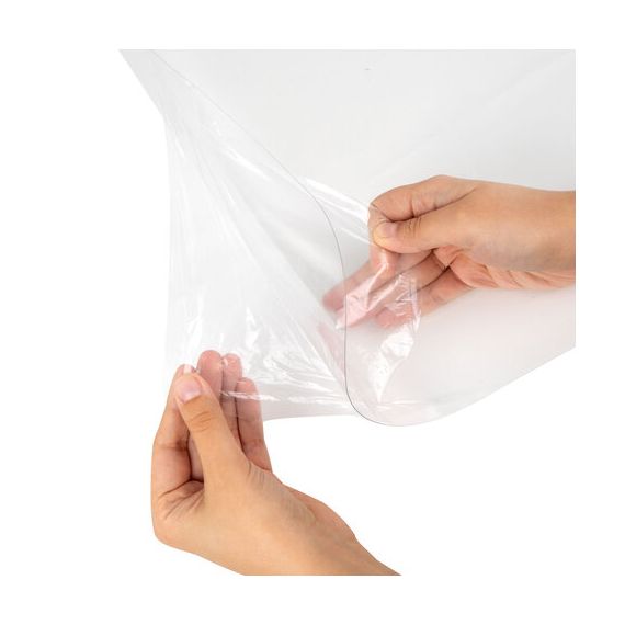 Прямоугольный коврик размером 100х120 см изготовлен из прозрачного полиэтилентерефталата толщиной 0,5 мм, устойчив к механическим воздействиям, не желтеет со временем, нетоксичен. Имеет гладкую глянцевую поверхность.
