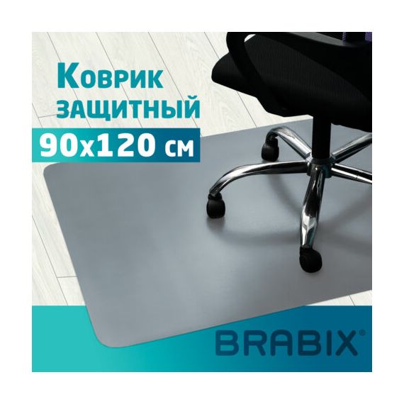 Коврик защитный напольный BRABIX, полипропилен, 90х120 см, серый, толщина 1,2 мм, 608709, 1212091205