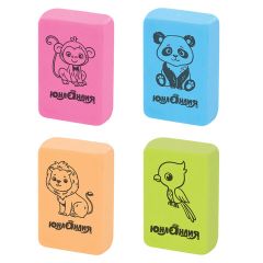 Ластик ЮНЛАНДИЯ "Зверушки" предназначен для удаления надписей, сделанных чернографитным карандашом. Имеет прямоугольную форму, поставляется в четырех цветах ассорти в ярком дизайне со зверушками. Ластик обеспечит лёгкое и чистое стирание без повреждения поверхности бумаги и без образования бумажной пыли. Размер - 28х18х10 мм. Поставляется в картонном дисплее.