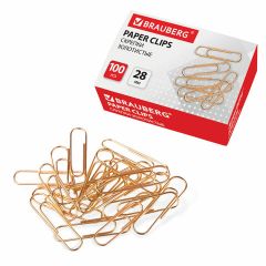 Скрепки BRAUBERG незаменимы в случаях, когда нужно соединить несколько бумаг, например, все листы договора. Скрепки изготовлены из стали, имеют классическую овальную форму и золотистый цвет. Длина скрепки составляет 28 мм. Не окисляются и не повреждают документы. 100 штук в картонной коробке.