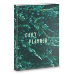 Ежедневник А5. Полудатир., 192 л. 7БЦ, мат. ламинац., выб. лакир. Форзацы – белые. Бумага – оф. 60 г/м2, белая,1 кр. Уп.карт. Лесные узоры