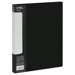 Папка с 10 вкладышами «СТАММ» серии «Стандарт» предназначена для хранения бумаг формата А4. Цвет папки – чёрный. Папка изготовлена из качественного полипропилена толщиной 600 мкм с текстурой «песок». Тип скрепления – термосварка. Размер изделия составляет 310*235 мм. Ширина корешка – 9 мм. Бумагам, вложенным в папку, не требуется перфорация дыроколом. На корешке папки имеется карман. Папка упакована в индивидуальный пакет. • Размер: 310*235 мм; • Толщина материала: 600 мкм; • Формат: А4; • Количество вкладышей: 10; • Цвет: чёрный; • Тип скрепления: термосварка; • Ширина корешка: 9 мм.