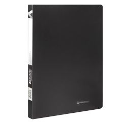 Папка BRAUBERG "Office" солидного черного цвета отлично подходит для хранения документов, составления каталогов, меню и т.п. Для маркировки содержимого на корешок наклеена этикетка. Папка изготовлена из качественного пластика толщиной 0,5 мм с антибликовой фактурой, а ширина корешка составляет 20 мм. Содержит 30 вкладышей, позволяющих хранить документы формата А4 и обеспечивающих их надежную защиту от попадания влаги, пыли и прочих повреждений.