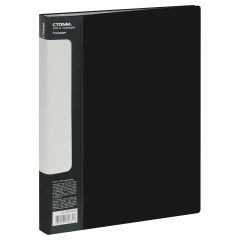 Папка с 80 вкладышами «СТАММ» серии «Стандарт» предназначена для хранения бумаг формата А4. Цвет папки – чёрный. Папка изготовлена из качественного полипропилена толщиной 800 мкм с текстурой «песок». Тип скрепления – термосварка. Размер изделия составляет 310*235 мм. Ширина корешка – 30 мм. Бумагам, вложенным в папку, не требуется перфорация дыроколом. На корешке папки имеется карман. Папка упакована в индивидуальный пакет. • Размер: 310*235 мм; • Толщина материала: 800 мкм; • Формат: А4; • Количество вкладышей: 80; • Цвет: чёрный; • Тип скрепления: термосварка; • Ширина корешка: 30 мм.