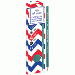 Карандаш чернографитный "Attomex" HB, диаметр грифеля 2,5 мм, шестигранный с ластиком, индивидуальная маркировка, пластиковый зеленый корпус