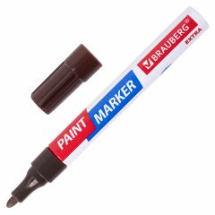 Маркер-краска лаковый BRAUBERG EXTRA предназначен для маркировки на различных поверхностях: бетон, дерево, стекло, металл, резина, пластик как в промышленных, так и в бытовых целях. СПОСОБ ПРИМЕНЕНИЯ: 1. Перед использованием хорошо встряхнуть с закрытым колпачком. 2. Снять колпачок, надавить на наконечник, подождать 20 секунд, когда краска полностью пропитает его. 3. После использования плотно закрыть колпачок. Высококачественные чернила коричневого цвета с лаковым эффектом идеально подходят для нанесения долговечной маркировки на любые поверхности. Благодаря усиленной формуле чернил краска ложится ровным слоем, полностью закрашивая поверхность. С помощью круглого прочного наконечника, выполненного из пористого акрила с шириной линии письма 4 мм, можно легко наносить широкие линии. Быстросохнущие чернила предотвращают смазывание в процессе маркировки. После высыхания надписи становятся термо- и водостойкими, а также устойчивыми к выцветанию и механическому истиранию. Отлично подходит для маскировки бытовых дефектов, таких как царапины и сколы. Надежный помповый механизм подачи чернил предотвращает вытекание и разбрызгивание в процессе использования, а также преждевременное высыхание. Корпус маркера выполнен из алюминия, внутри находятся 2 металлических шарика для взбалтывания краски. Цвет колпачка соответствует цвету чернил.