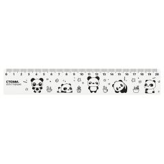 Линейка СТАММ "Панды" предназначена для чертёжно-измерительных работ. Длина шкалы – 20 см, ширина линейки – 35 мм. Изделие имеет безопасные закруглённые края и чёткую контрастную миллиметровую шкалу. Линейка изготовлена из качественного полистирола, и имеет гладкую глянцевую поверхность. Линейка дополнена оригинальным дизайном. Цвет изделия – прозрачный. • Материал: полистирол; • Длина шкалы: 20 см; • Ширина линейки: 35 мм; • Цвет: прозрачный.