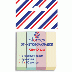 Набор самоклеящихся этикеток-закладок "Attomex" бумажные 50x12 мм, 4x80 листов, 4 пастельных цвета, в пластиковом пакете с европодвесом