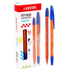 Ручка шариковая "deVENTE. Vista" d=0,7 мм, игольчатый пишущий узел, сине-желтый корпус с пластиковым держателем, сменный стержень, индивидуальная маркировка, синяя