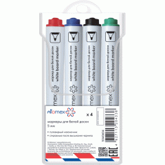 Набор маркеров для белой доски "Attomex" (04 цв - зел, красн, син, черн) круглый корпус с клипом, пулевидный наконечник, ширина линии 5 мм, в пластиковом блистере