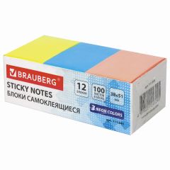 Бумага для заметок с клейким краем BRAUBERG рекомендуется для использования в процессе совещаний, обучения, мозговых штурмов. Идеально подойдет для работников офиса и руководителей. Набор стикеров 3 неоновых цветов (желтый, розовый, голубой) в форме прямоугольника 38х51 мм состоит из 12 блоков по 100 листов каждый. Плотность бумаги составляет 75 г/м2. Клейкий слой - 35 Н/м. Легко клеятся к любой поверхности. Не оставляют следов. Упакованы в картонную коробку. Чтобы стикеры держались дольше следуйте следующим рекомендациям по использованию: - отделяйте листы от блока вдоль клеевой полосы в горизонтальном направлении - это поможет избежать скручивания и последующего отклеивания стикера; - убедитесь в отсутствии пыли и грязи на поверхности для приклеивания - так вы обеспечите наиболее продолжительный срок службы клеевого слоя.