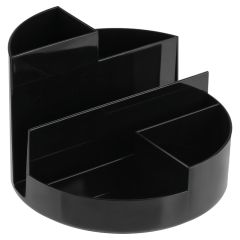 Компактный органайзер для офиса. Прочный корпус, гладкая глянцевая поверхность. Объемные, удобно расположенные секции разной высоты позволяют хранить множество канцелярских мелочей и пишущих принадлежностей. Отделение для визиток и листков для записей. Прочный корпус изделия изготовлен из полистирола.