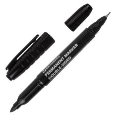 Надежный маркер BRAUBERG "DOUBLE" для повседневного использования. Предназначен для письма на любой поверхности: бумага, полиэтилен, дерево, стекло, металл, натуральная кожа, ткань, камень, плитка. Перманентный двусторонний маркер черного цвета имеет пластиковый корпус круглой формы диаметром 12,4 мм. Особая нестираемая основа перманентного маркера обеспечивает такие качества, как стойкость к воздействию воды, ультрафиолета, низких и высоких температур. Благодаря спиртовой основе чернила быстро сохнут и не размазываются. На противоположных концах корпуса имеет два износостойких наконечника. Толщина линии письма круглого фетрового наконечника - 3 мм, тонкого металлического - 0,8 мм. Изделие не перезаправляется. Плотно закрывается колпачком, что предотвращает высыхание наконечника и чернил. Цвет колпачка соответствует цвету чернил.