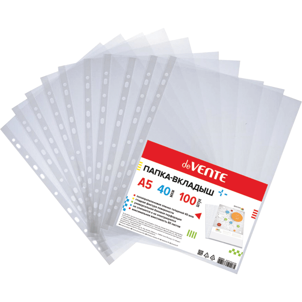 Папка-вкладыш "deVENTE" A5 вертикальная, 40 мкм, гладкая фактура, с универсальной боковой перфорацией, 100 шт в уп