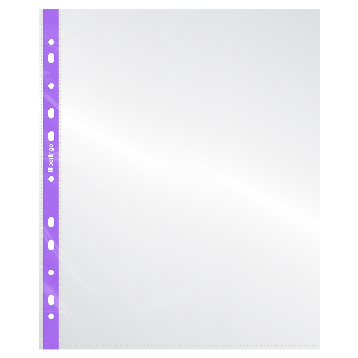 Глянцевые прозрачные файлы-вкладыши Berlingo "Mirror" формата А4 размера 305*235 мм предназначены для хранения неперфорированных документов в любых папках и защиты листов от внешних воздействий. Вертикальная ориентация, толщина пленки 30 мкм, вместимость файла от 50 до 100 листов бумаги (в зависимости от плотности). В упаковке 100 файлов. Благодаря уникальной технологии производства, при которой используется до 40 % больше материала, достигается максимальная прочность каждого вкладыша. Белый логотип бренда на сиреневой боковой ленте.