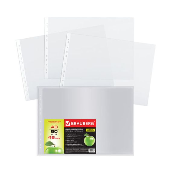 Горизонтальные перфорированные папки-файлы BRAUBERG предназначены для хранения документов и подходят для подшивки в папки с любым кольцевым механизмом и скоросшивателем.