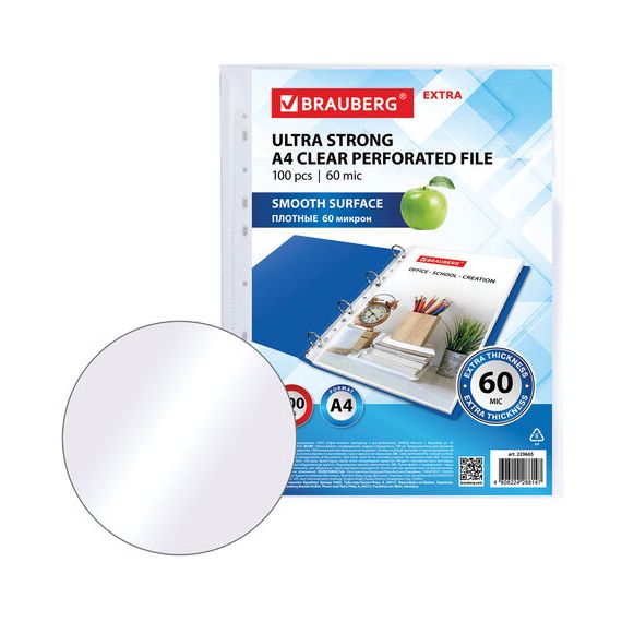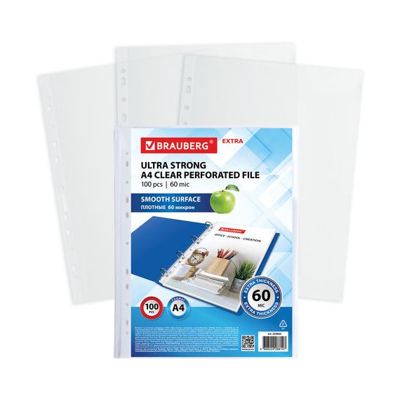 Перфорированные папки-файлы BRAUBERG "EXTRA 600" предназначены для хранения документов в папке с любым кольцевым механизмом или скоросшивателем.