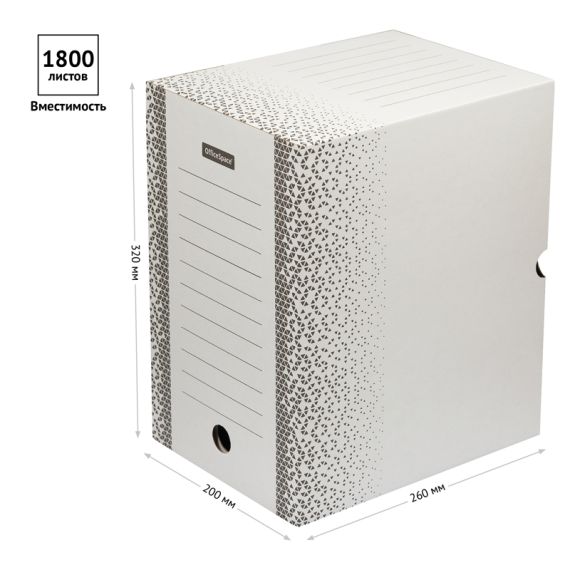 Короб архивный с клапаном OfficeSpace "Standard" плотный, микрогофрокартон, 200мм, белый, до 1800л.
