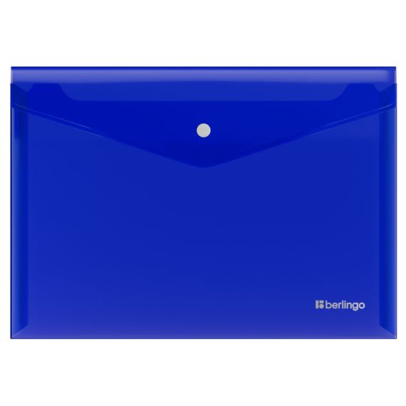 Папка-конверт на кнопке Berlingo No Secret формата А3 (433*305 мм) предназначена для хранения документов и вмещает до 120 листов. Изготовлена из высококачественного полипропилена плотностью 200 мкм с глянцевой текстурой поверхности. Папка плотно закрывается на надёжную застёжку-кнопку, которая рассчитана на ежедневное использование и защищает документы от повреждений и загрязнений и станет отличным помощником в учёбе и работе. Насыщенный синий цвет в сочетании с белой контрастной кнопкой и серебристым логотипом. Полупрозрачная поверхность.